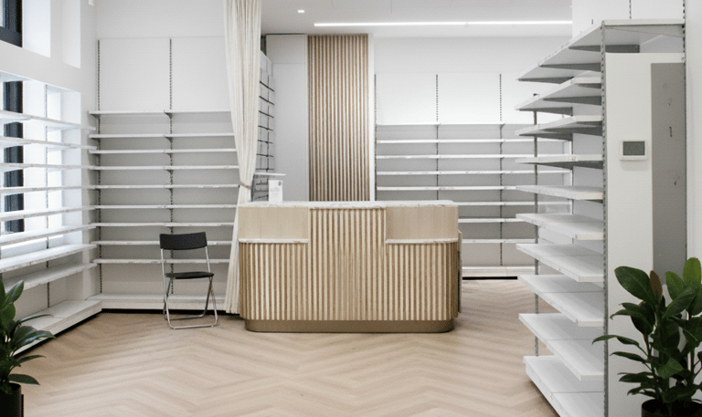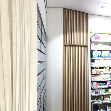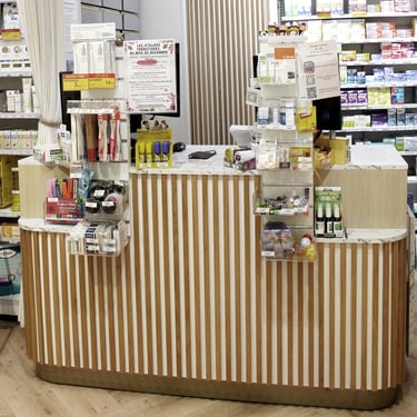 Le projet consistait à concevoir entièrement une pharmacie de quartier, conviviale avec une identité plus «comme à la maison». Le choix des matériaux, des mobiliers ont été pensés afin de proposer une appropriation de l’espace et une déambulation agréable à ses usagers (clients et pharmaciens).